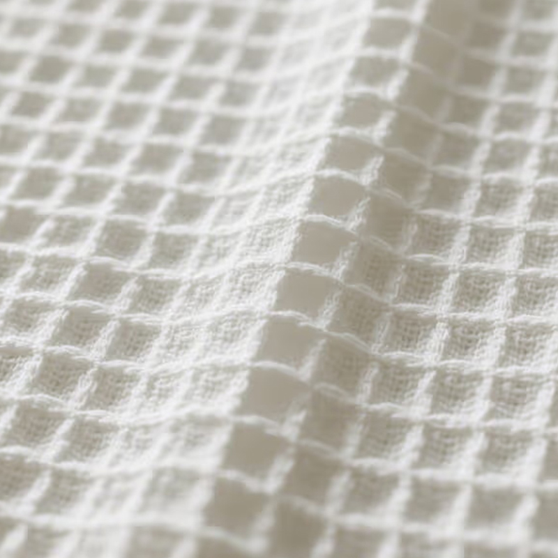 Ang Waffle Knit Comfort Fabrics ay isang telang hinabi na may kakaibang grid-like concave-convex texture. Ang ibabaw nito ay hugis waffle, na may mahusay na breathability at mahusay na pagsipsip ng pawis. Ang istrukturang ito ay nagbibigay-daan sa tela na epektibong sumipsip ng kahalumigmigan at mabilis na nag-aalis ng pawis, na pinananatiling tuyo ang balat. Ito ay angkop para sa pagsusuot sa panahon ng high-intensity na ehersisyo, at maaaring mabilis na sumipsip at mag-evaporate ng pawis upang matiyak ang ginhawa sa panahon ng ehersisyo. Ang liwanag at lambot ng Waffle Knit na tela ay ginagawa itong napakakomportableng isuot sa tag-araw. Ito ay malawakang ginagamit sa paggawa ng mga kamiseta ng tag-init at iba pang damit upang mapanatiling malamig ang katawan sa mainit na panahon. Dahil sa magandang breathability at pagpapawis nito, ang telang ito ay napaka-angkop para sa paggawa ng mga sports towel upang matulungan ang mga atleta na mabilis na punasan ang pawis at manatiling tuyo habang nag-eehersisyo.